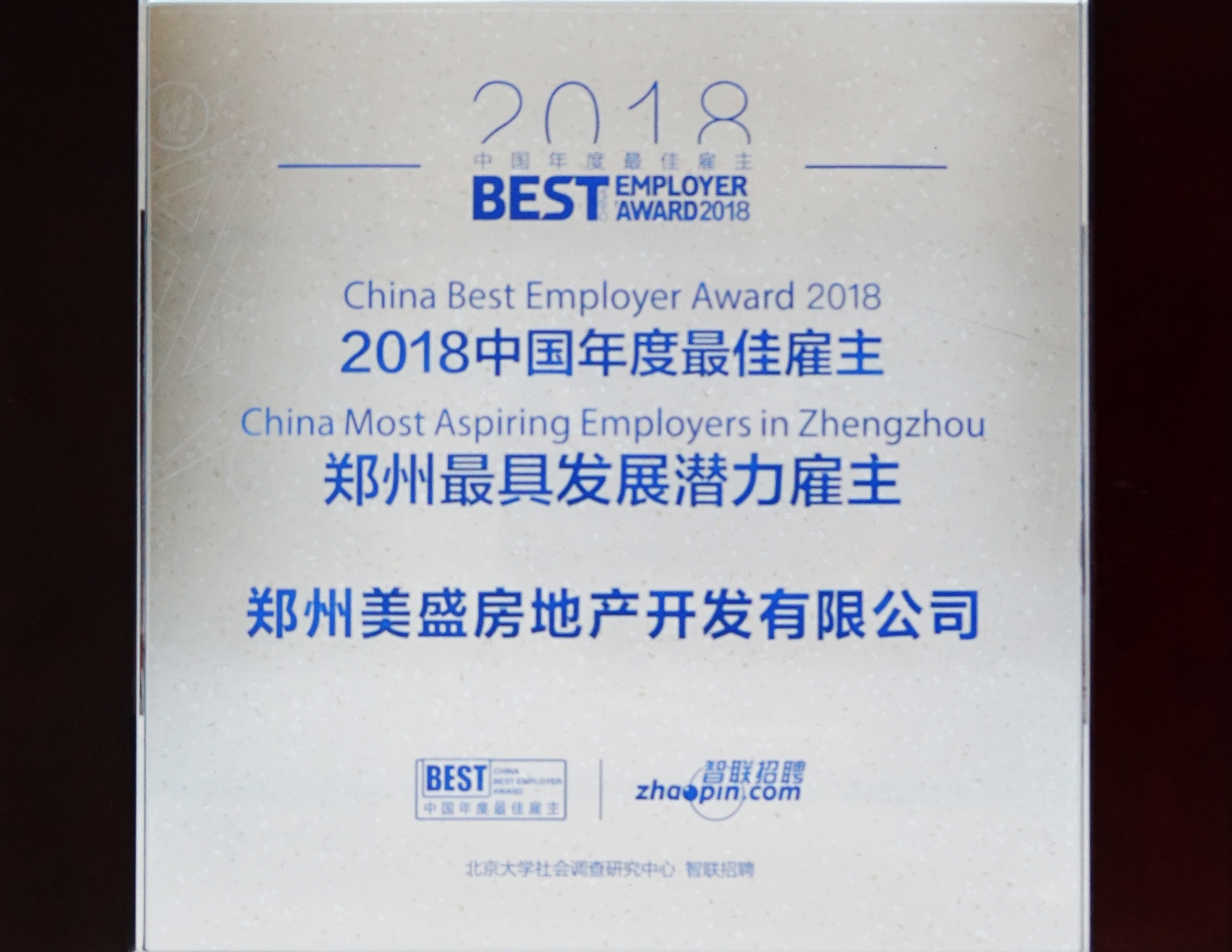 2018中國年度最佳雇主 鄭州最具發展潛力雇主 智聯招聘 -
