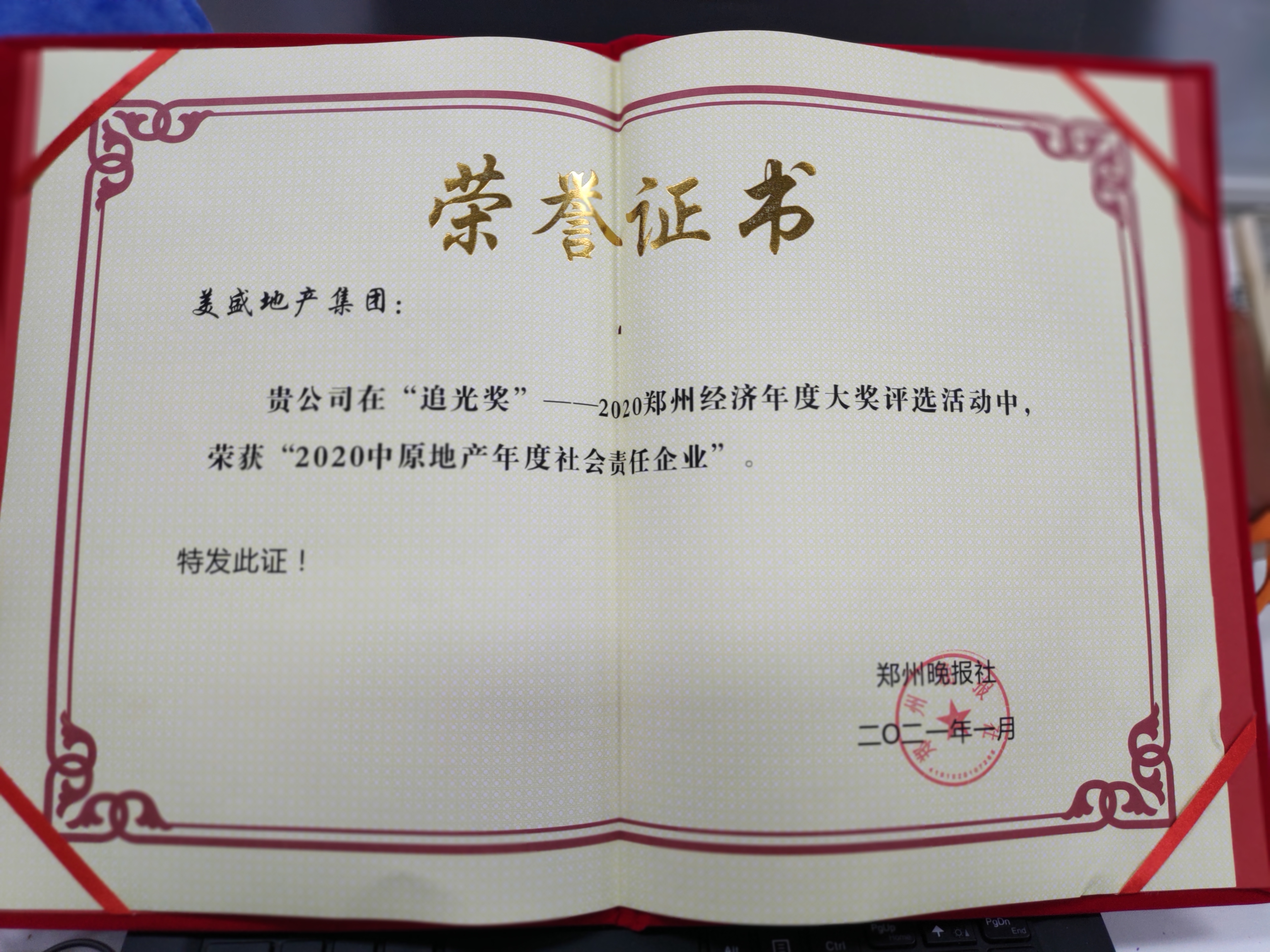 2020中原地產年度社會責任企業—鄭州晚報 -