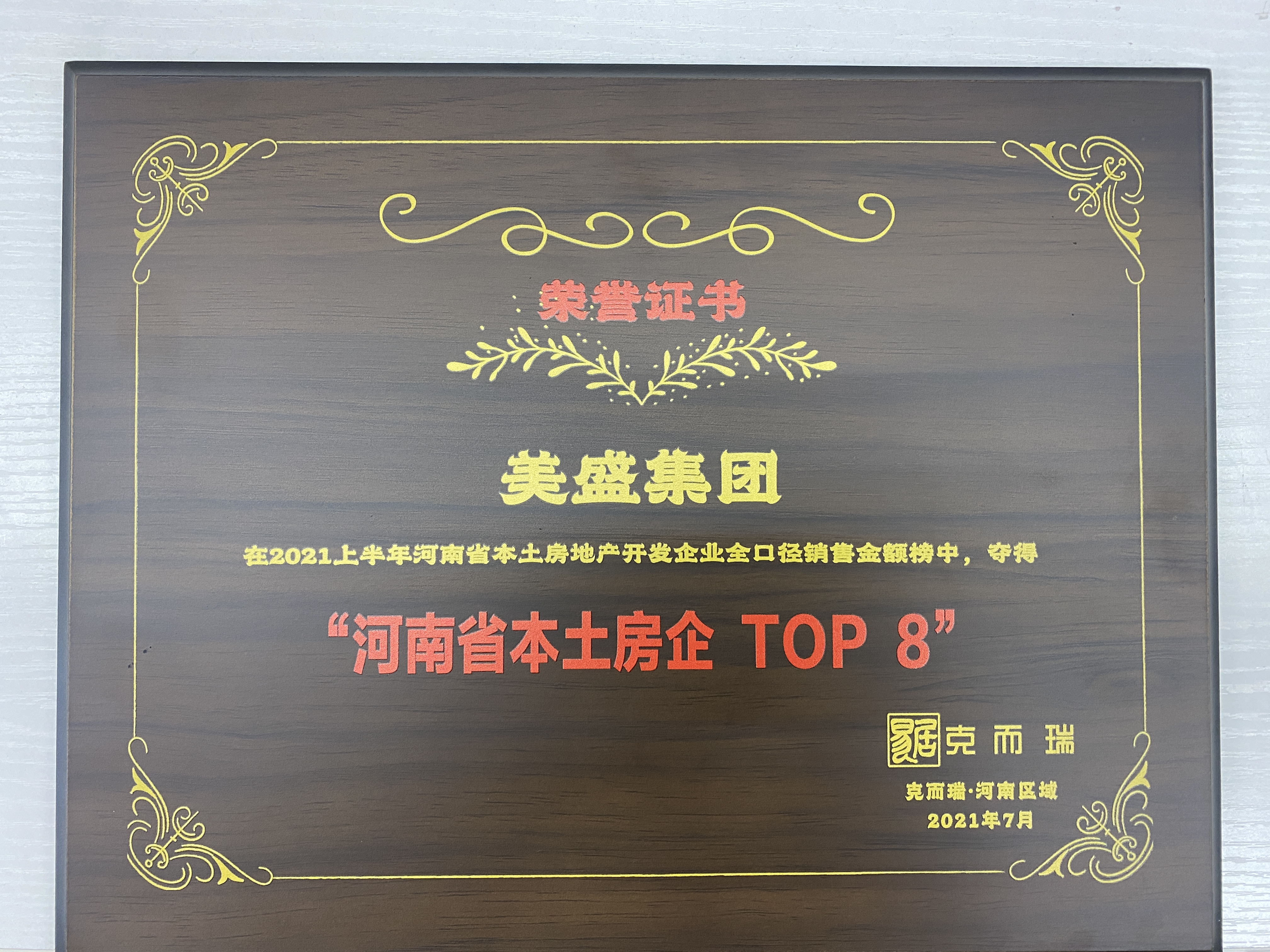 出彩中原 行業典范 2021年度品牌影響力獎 美盛集團 -