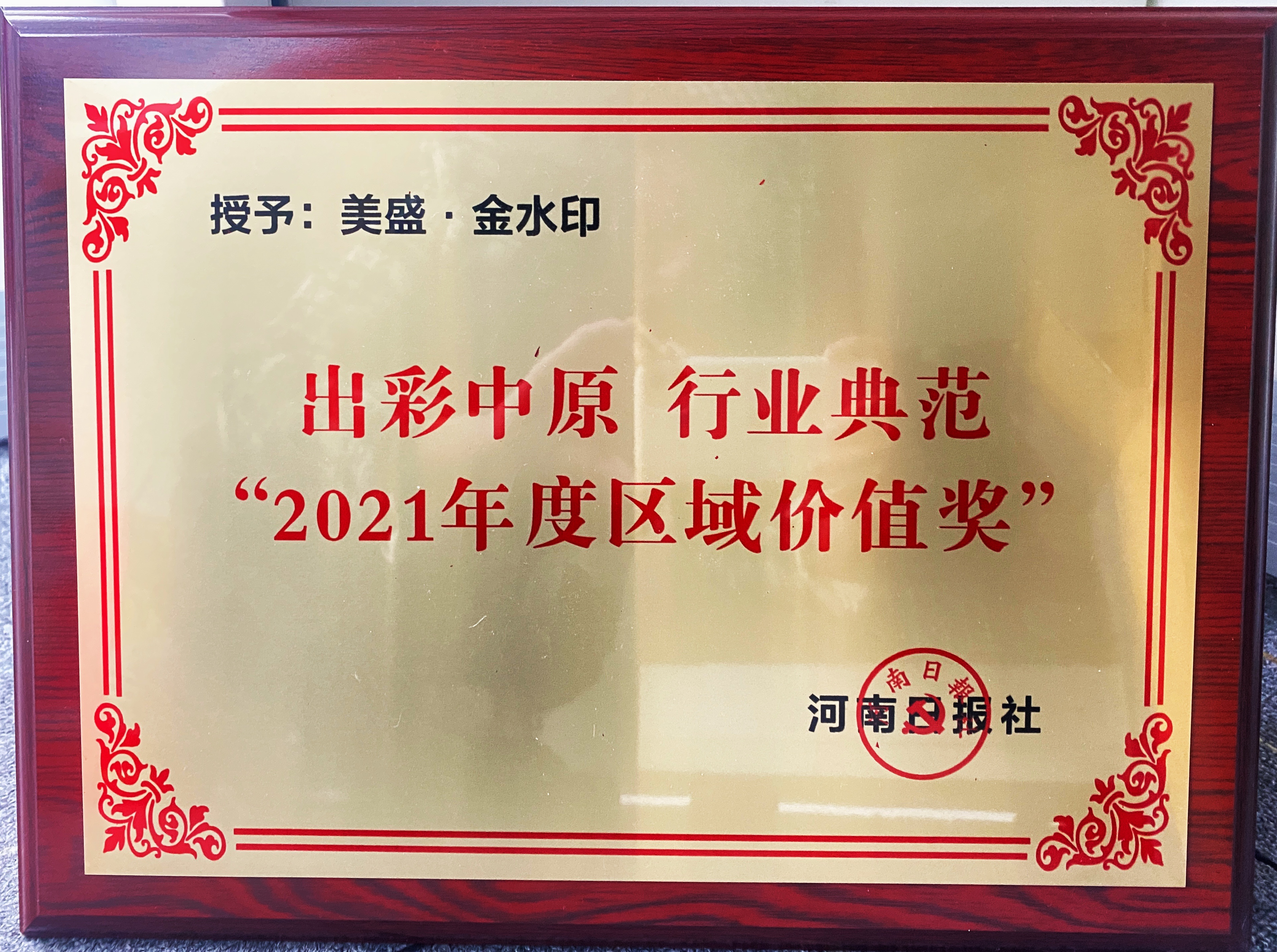 出彩中原 行業典范 2021年度區域價值獎 美盛·金水印 -