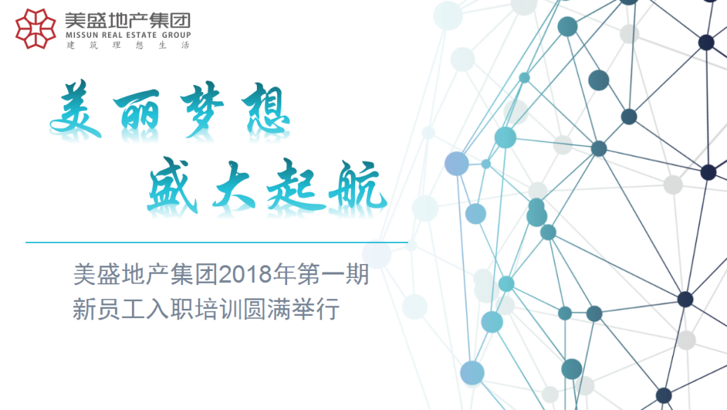 2018年,美盛地產集團蓄勢待發,多個新項目即將面世,新的發展契機必將迎來跨越式發展的新機遇。今年第一季度,大量新鮮血液加入美盛大家庭,為我們的團隊帶來了新的動力。為促進公司新進員工深度理解企業文化、增強團隊凝聚力、打造高效、協作的團隊,特組織新入職員工參加了為期兩天的“美麗夢想 盛大起航-2018年第一期新員工入職培訓”。