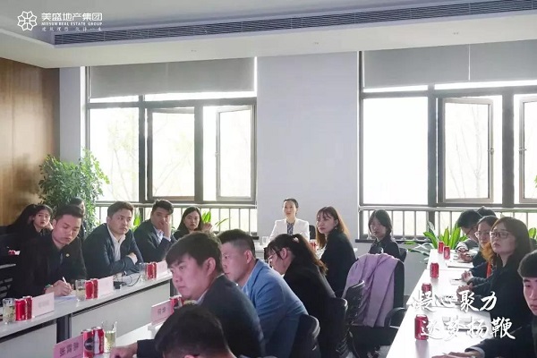 2019年4月3日,美盛地產集團營銷管理中心二季度會議在美盛·北龍臺項目蓄勢開啟,營銷管理中心總經理梁藝君女士同營銷骨干精英眾志成城、齊聚一堂,以拼搏的決心開啟二季度新篇章,誓創佳績再突破。