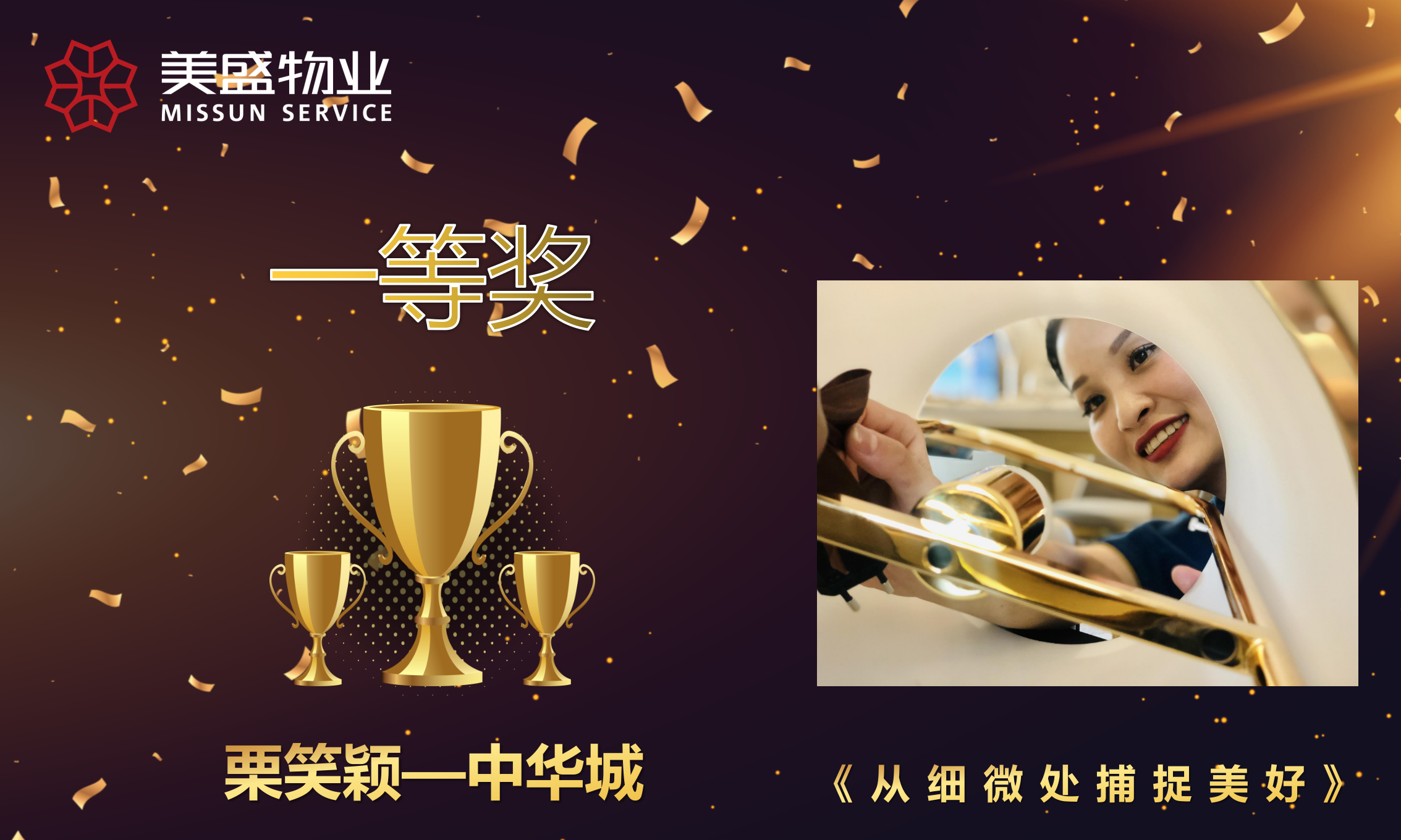 “精彩美盛,定格你的美”主題攝影比賽由美盛物業管理中心人力行政部主辦,旨在展示美盛物業員工對待事業的執著追究求和對生活的無限熱愛,增強員工的責任感、使命感及主人翁精神,激發團隊活力,傳播正能量,將日常的瞬間定格為永久的美。